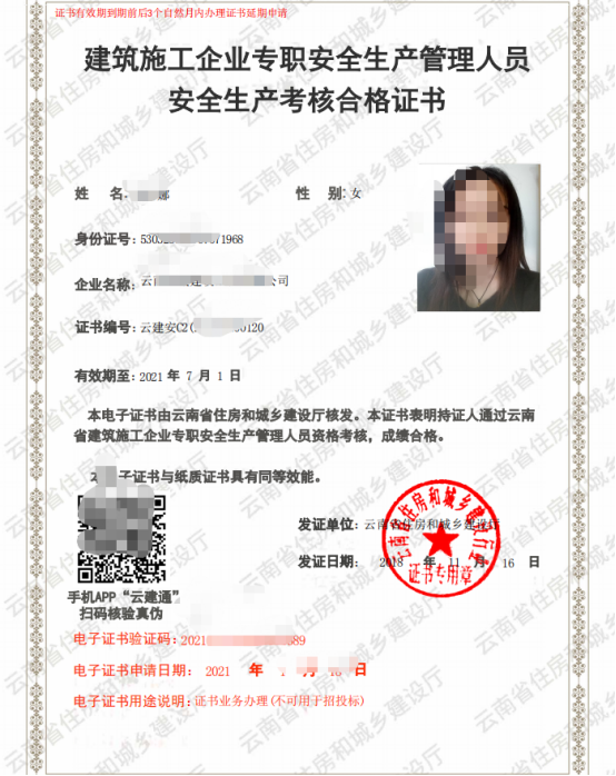 住建廳(專職安全員C證)證書樣本